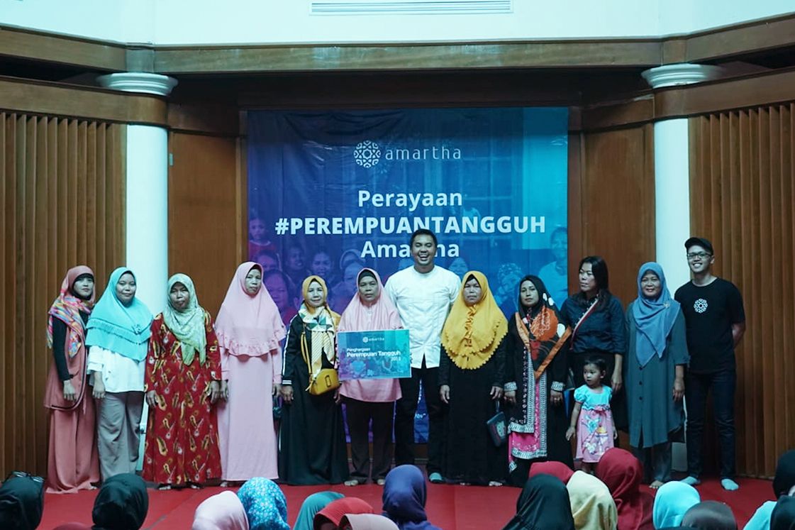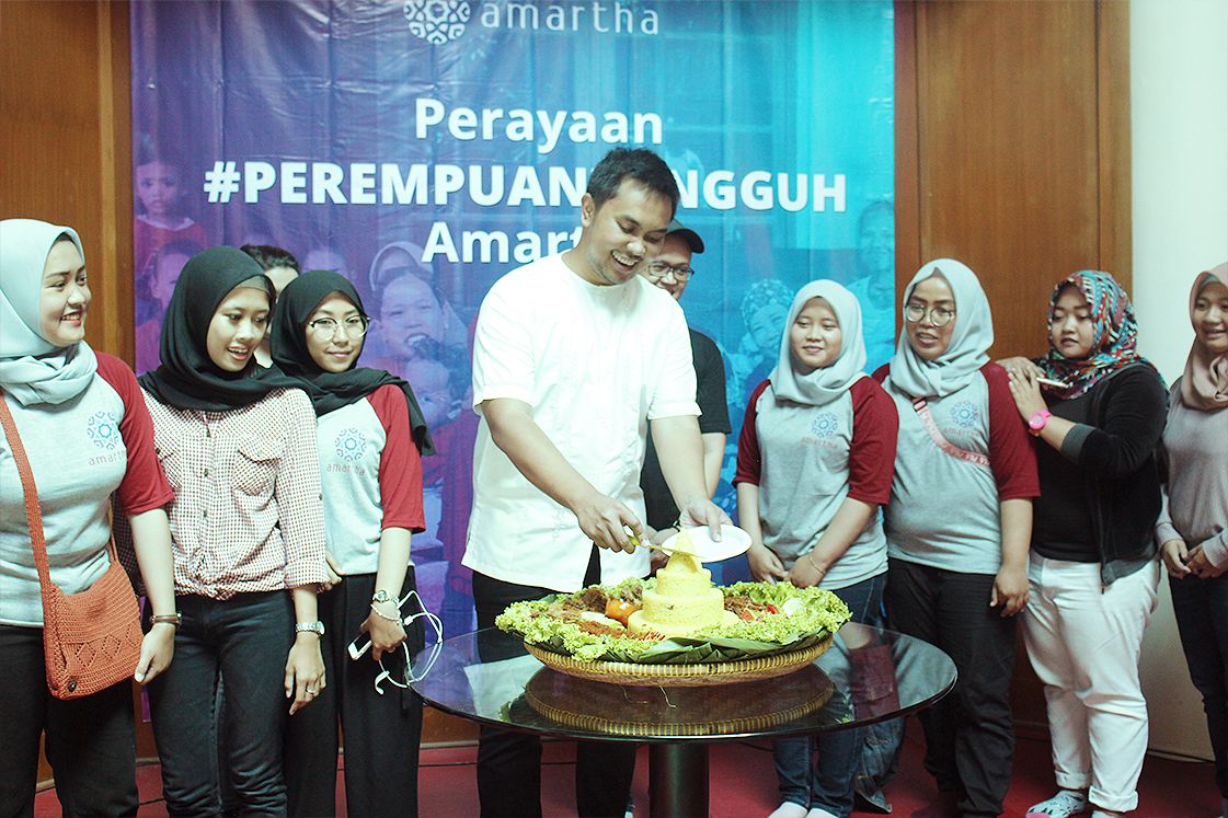 Pendiri dan CEO Amartha, Andi Taufan Garuda Putra saat memotong tumpeng di perayaan #PerempuanTangguh Amartha di Ciseeng.[/caption] Pada acara ini, lebih dari 500 Ibu-ibu mitra yang hadir mendapatkan bantuan modal kerja dari Amartha berupa kompor dan teflon. Selain pembagian modal kerja, acara juga dimeriahkan dengan pembagian hadiah berupa 10 tv 32 inci serta 35 hadiah berupa rice cooker, dispenser dan kipas angin.