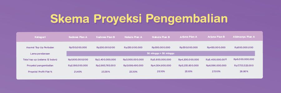 - Program akan dinyatakan berhenti apabila pendana melakukan cashout