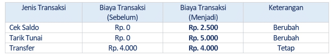 Sebelumnya, Nasabah yang ingin cek saldo atau tarik tunai tidak dikenakan biaya apapun atau gratis. Namun, per 1 Juni mendatang, bagi Nasabah yang ingin cek saldo di ATM LInk akan dikenakan biaya Rp2.500 dan untuk tarik tunai dikenakan biaya Rp5.000. Sementara transaksi transfer tidak mengalami perubahan harga, yaitu Rp4.000.