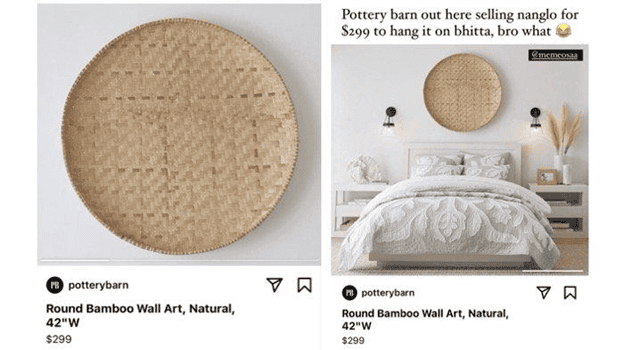 Menariknya, tampah itu disebut sebagai Round Bamboo Wall Art di salah satu web desain interior. Tampah seharga 4 jutaan Rupiah tersebut dijual oleh Pottery Barn, sebuah e-commerce asal Amerika Serikat. Pottery Barn merupakan jaringan toko perabot rumah tangga kelas atas yang didirikan sejak 1949.