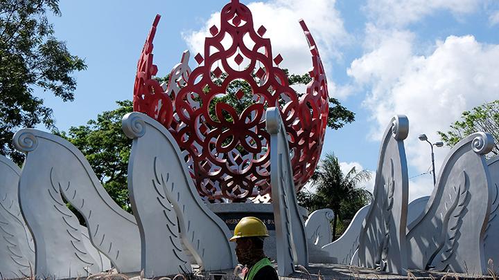 Monumen ini tentunya memiliki makna tersendiri. Di bagian atas monumen yang berbentuk kelopak bunga warna merah memiliki makna yang diambil dari logo G20.